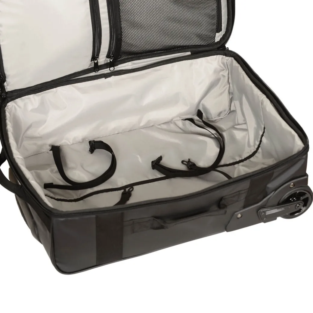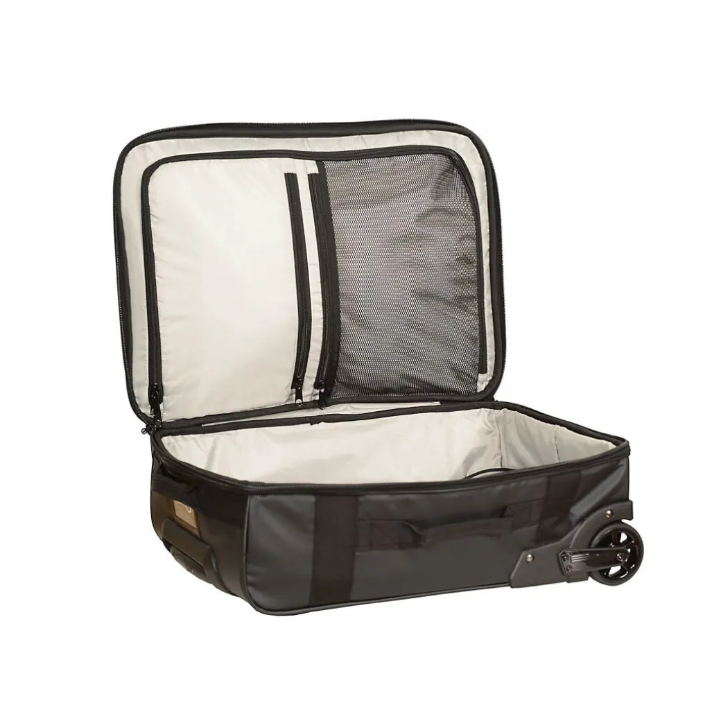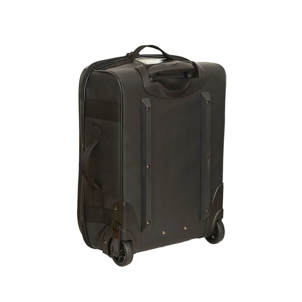 Selkeä ja kevyt vetolaukku, joka koonsa puolesta sopii käsimatkatavaraksi lentokoneeseen.