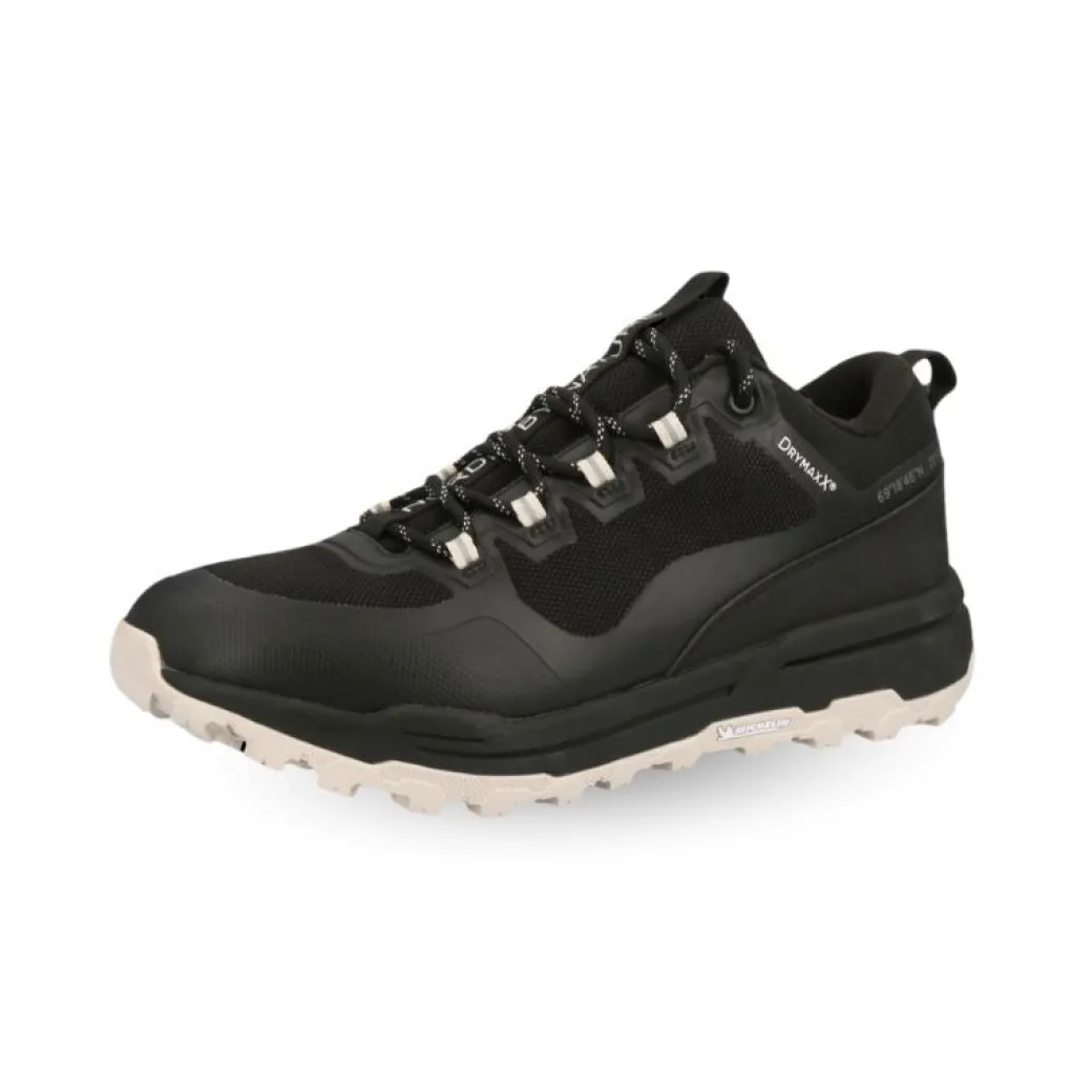 Vedenpitävä DrymaxX kalvo yhdistettynä vuorin sukkarakenteeseen pitää jalat kuivana märilläkin keleillä ja maastossa. Päällis- ja vuoritekstiilit on kaikki valmistettu kierrätetystä polyesteristä, ja päällisen HF-painetut TPU vahvikkeet kestävät kulutusta. Muotoiltu pohjallinen lisää mukavuutta, ja on irrotettavissa, jos niitä haluaa vaihtaa.