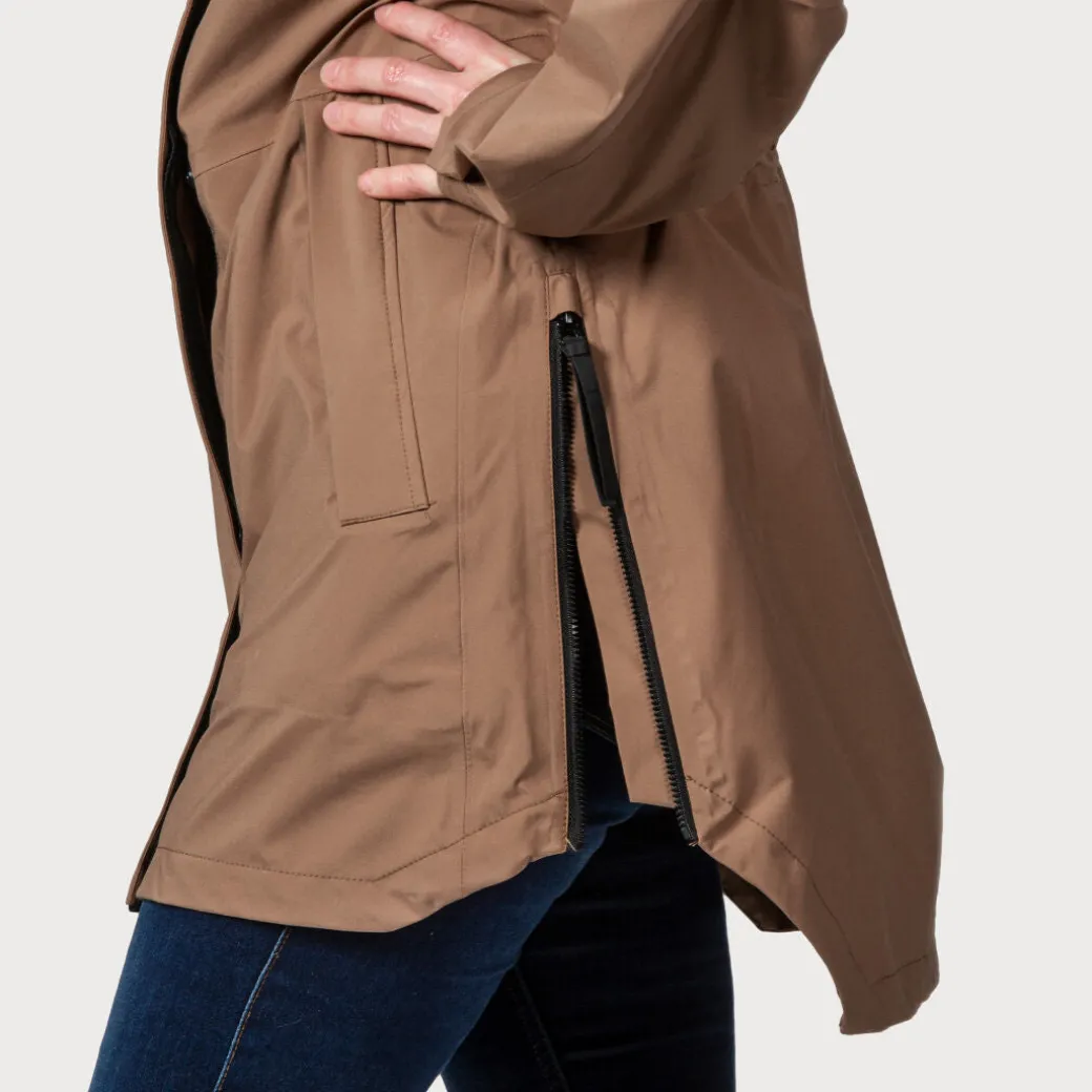 Naisten takin malli on oversize. Naisten mallissa takin yleisilmettä on helppo säädellä vyötärön kiristysnyörin avulla.