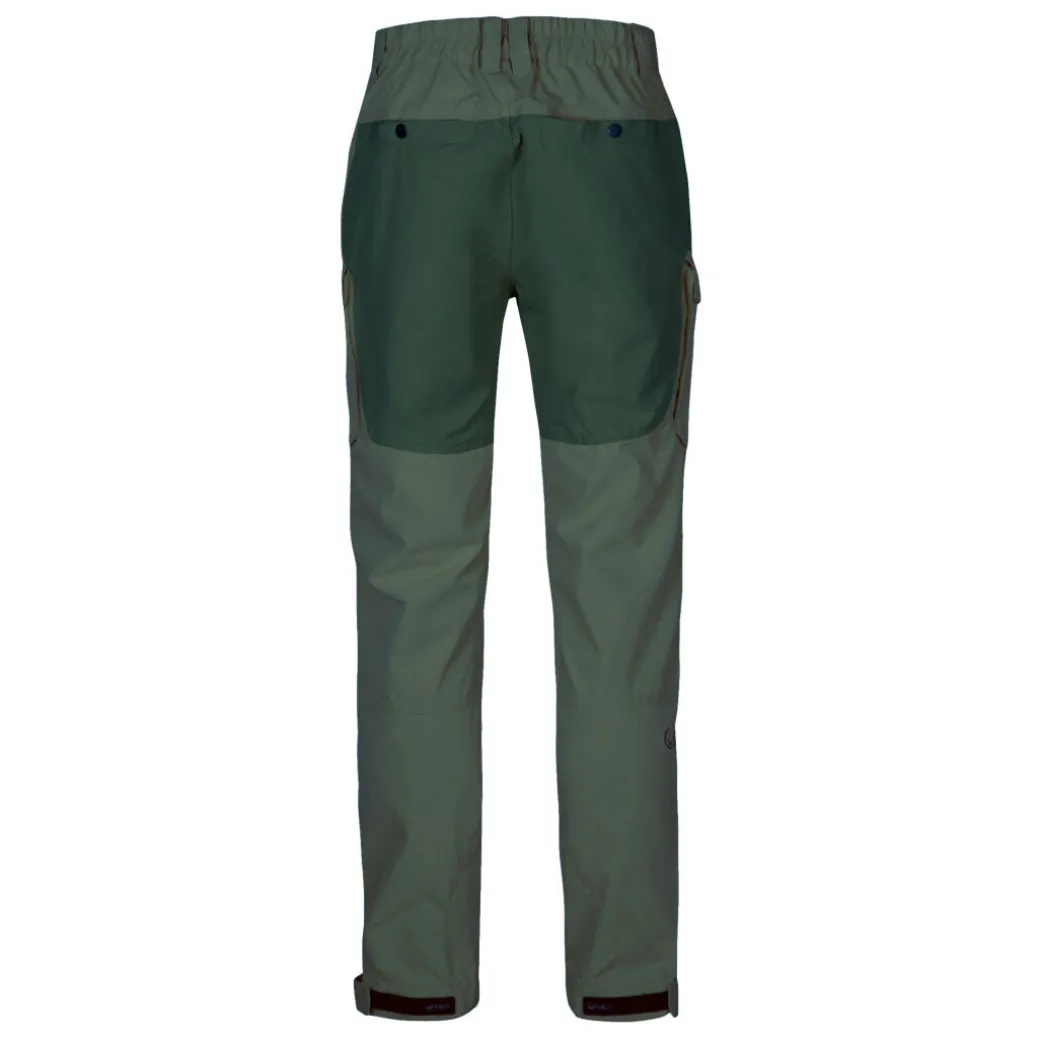 Housut on kalvottomat mutta on DWR-käsitelty, jonka ansiosta housut ovat vettähylkivät. Housujen tuulenpitävä ja erittäin hengittävä materiaali antaa suojan sateen yllättäessä.