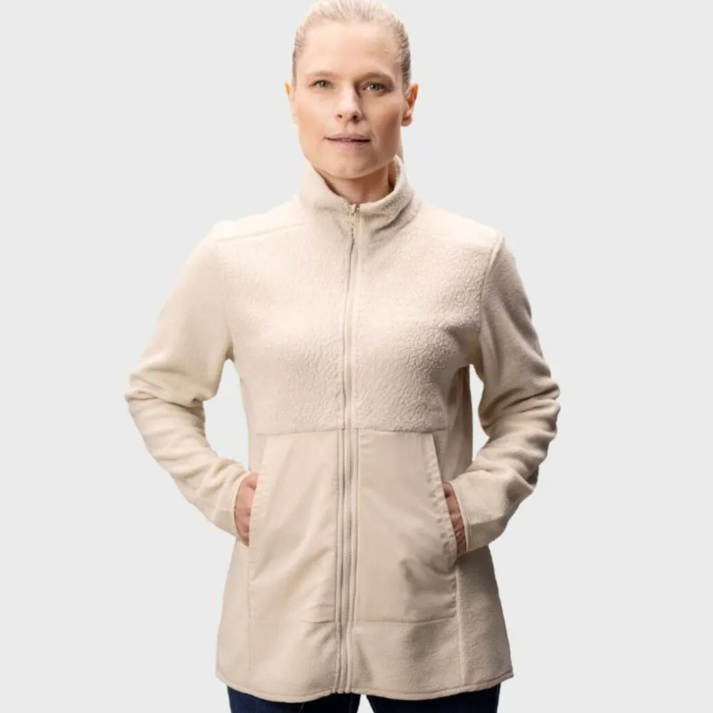 Valmistettu pörröisestä ja superpehmeästä fleecemateriaalista, Synkas-fleecetakki on suunniteltu pitämään sinut lämpimänä ja mukavana. Sen rento istuvuus ja pidennetty pituus tarjoavat erinomaisen suojan kylmältä, tehden siitä täydellisen valinnan viileille päiville.